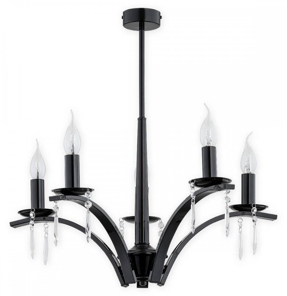 5-płomienny czarny, połyskliwy żyrandol świecznikowy do salonu lub jadalni. Czarna, prosta konstrukcja stelaża nadaje lampie nowoczesny charakter.