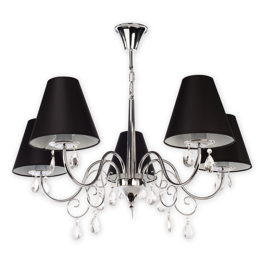 5-ramienny żyrandol do salonu to propozycja od polskiego producenta. Tkaninowe abażury znakomicie uzupełniają elegancki chromowany stelaż, a drobne kryształki dodają blasku.