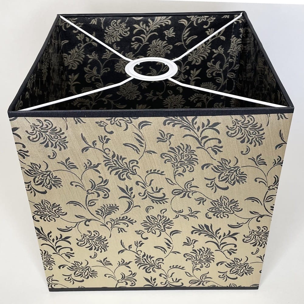 Abażur w kształcie sześcianu do lampy stojącej lub do lampy wiszącej z mocowaniem na oprawkę, bardzo starannie wykonany.