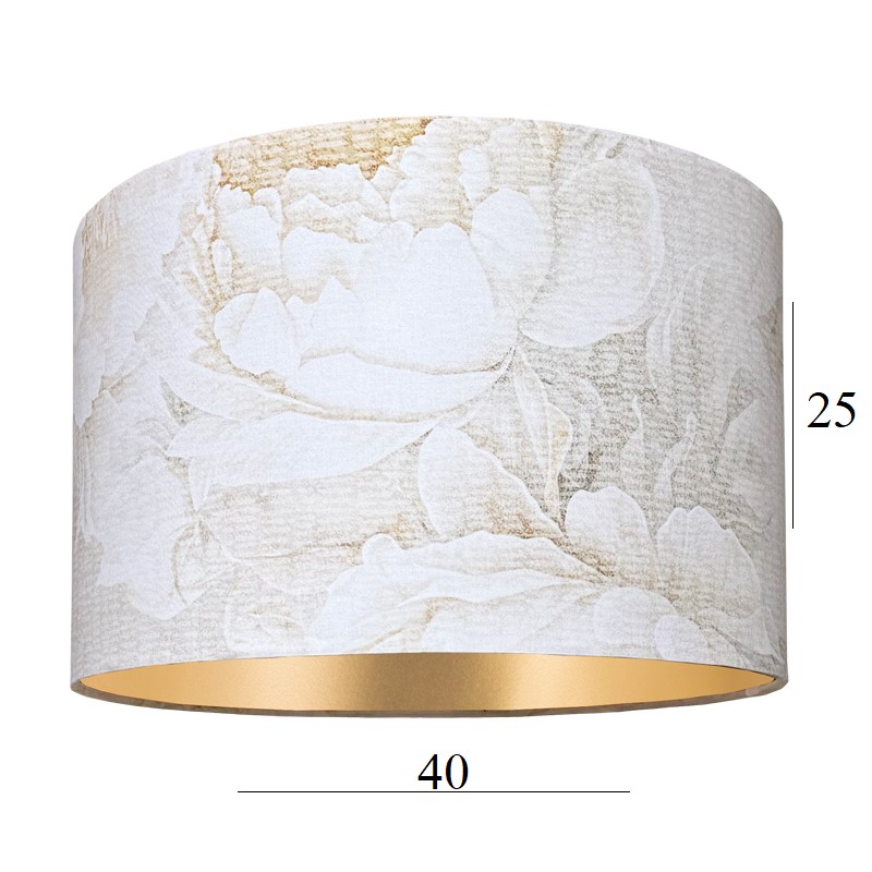 Abażur 40 cm do lampy beżowe kwiaty ze złotym środkiem 14W E27 40 wys 25 PEONIE 002 PREMIUM