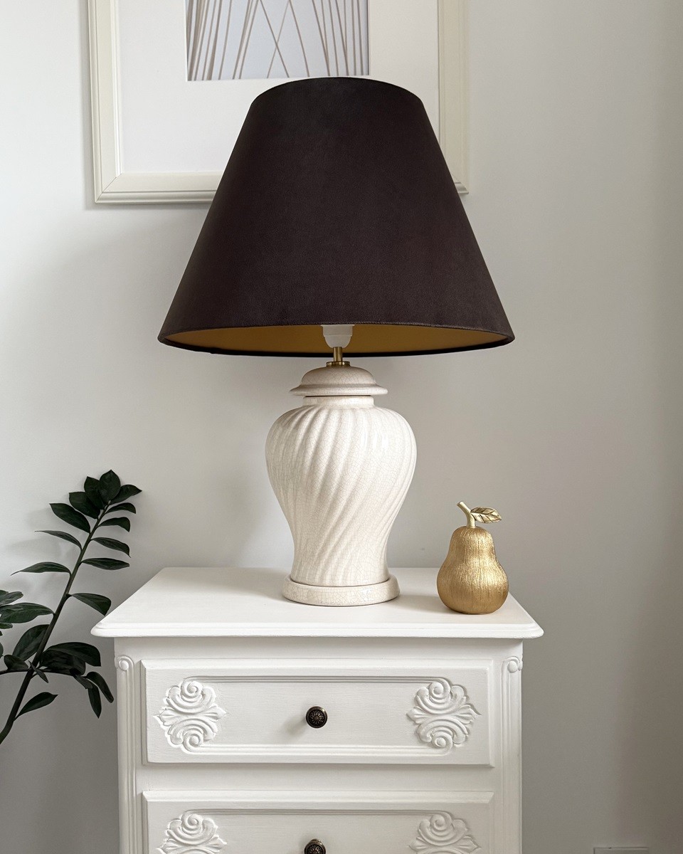 Ciemnobrązowy abażur do lampy, idealny do eleganckich wnętrz
