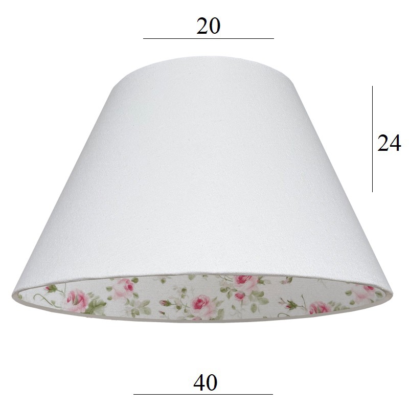 Abażur do lampy stożek biały 40cm z tkaniną we wzory od wewnątrz 6S E27 20/40 wys 24 ROSSE 020