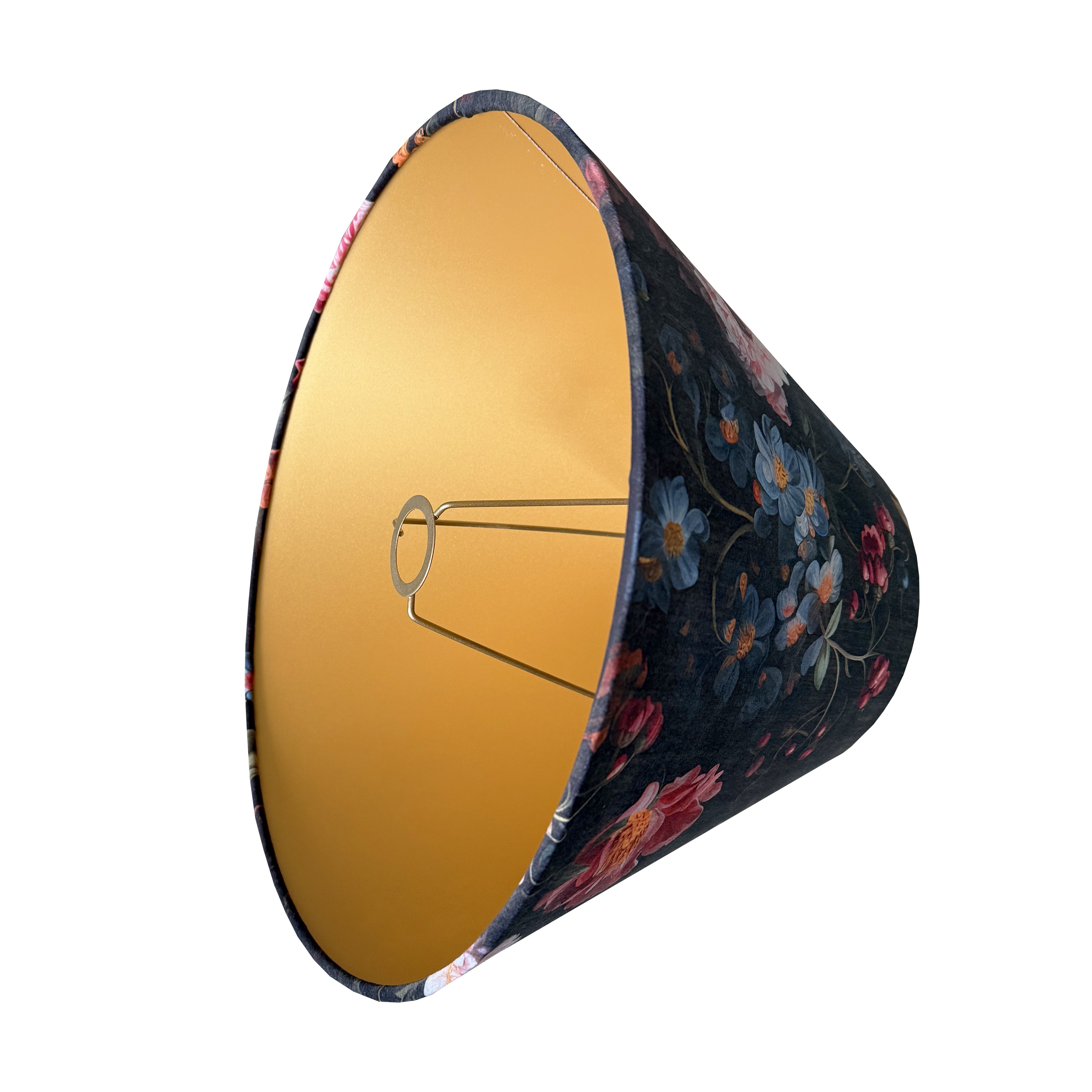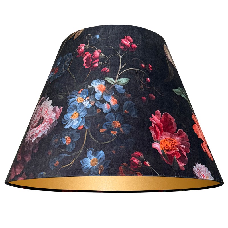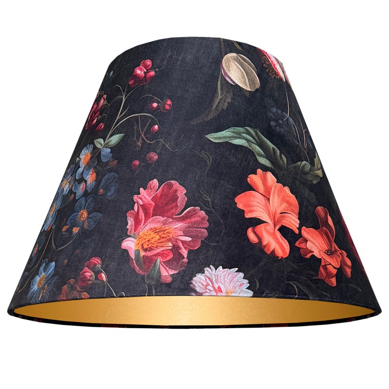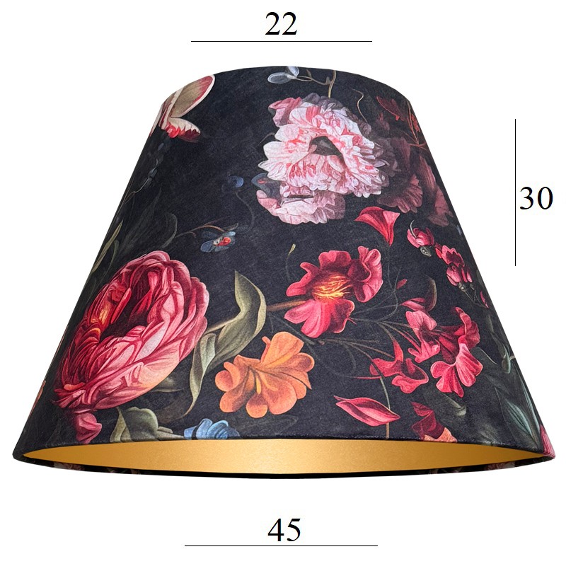 Abażur do lampy stożek z aksamitu w kwiaty ze złotym wnętrzem 8S E27 22/45 wys 30 FOLK 012 premium