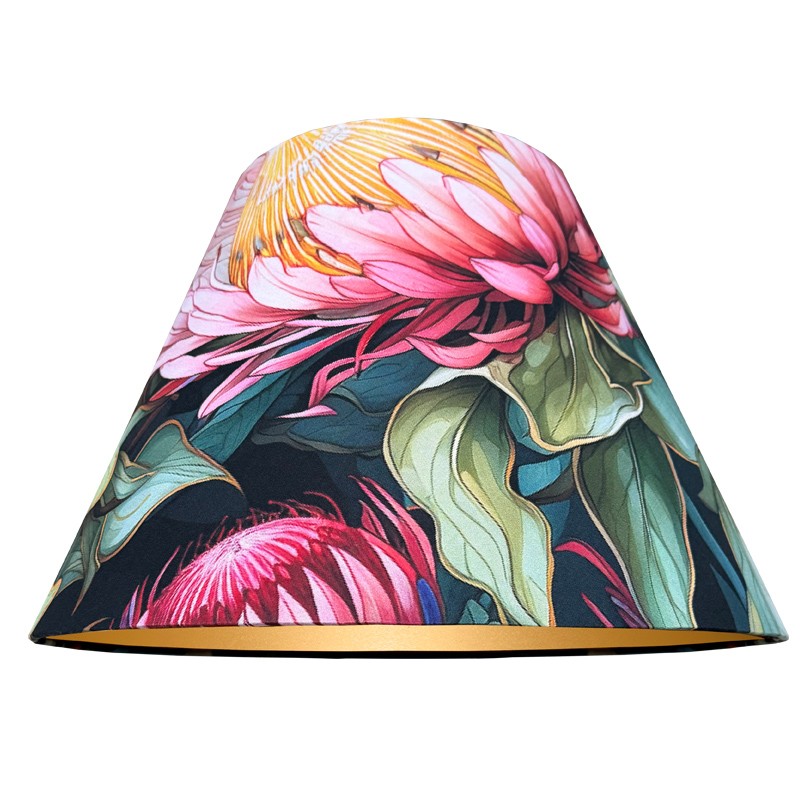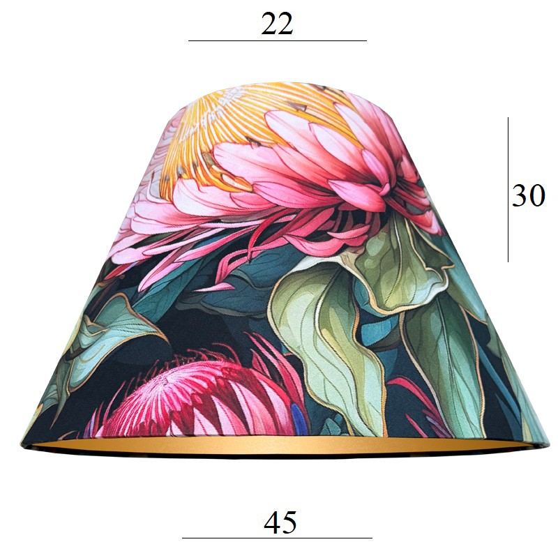 Abażur do lampy w duże kwiaty ze złotym wnętrzem 8S E27 22/45 wys 30 SREBRNIK 003 premium