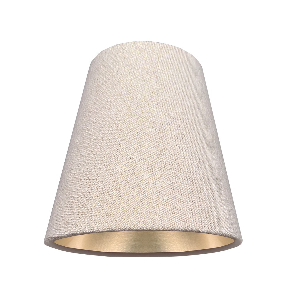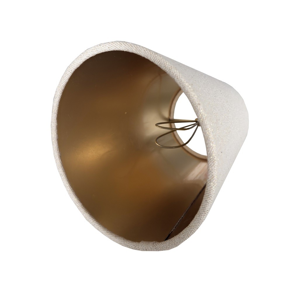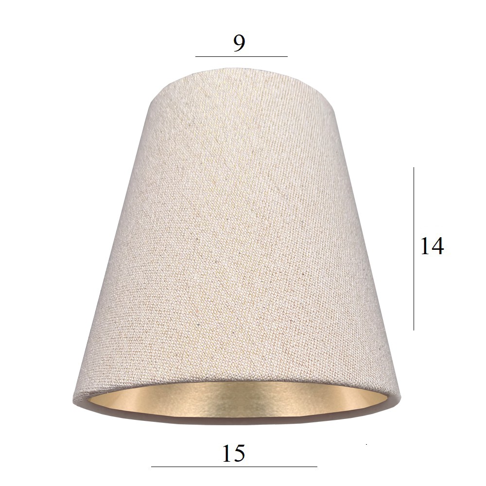 Abażur do żyrandola kinkietu len ze złotą nitką AB E14 9/15 wys GOLDEN LINEN na żarówkę