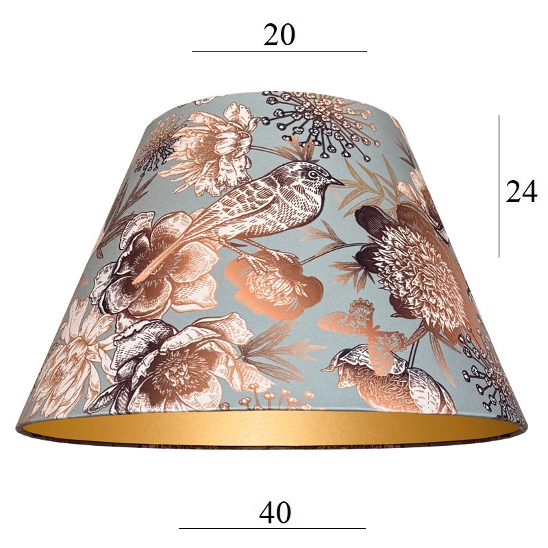 Abażur stożkowy z materiału w złote kwiaty do lampy 6S E27 FLOWERS welur 20/40 wys 24 stożek