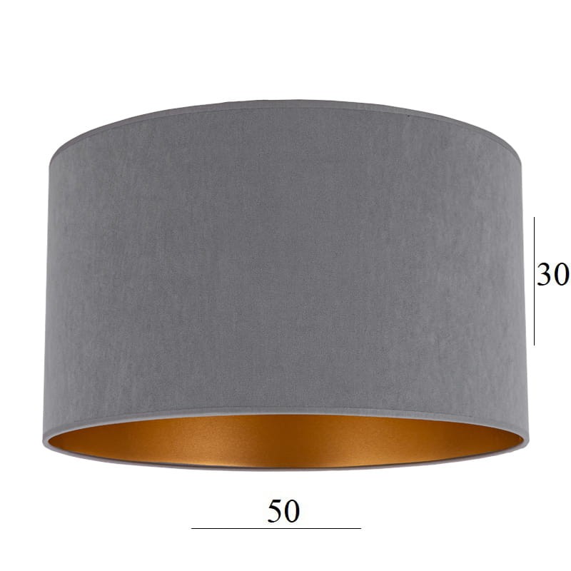 Abażur w kształcie dużego walca 6W-E27 szary welur - 50/30