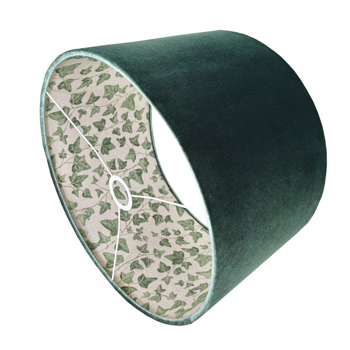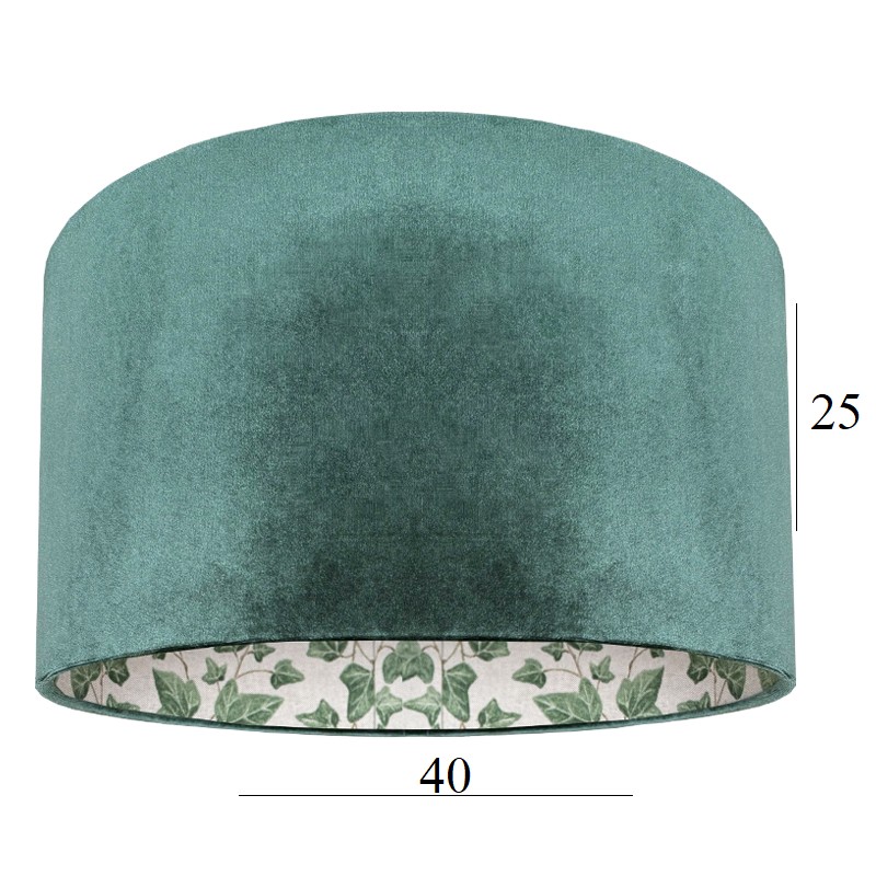 Abażur w kształcie walca z zielonego aksamitu z wzorzystym wnętrzem 14W E27 40 wys 25 BLUSZCZ 009