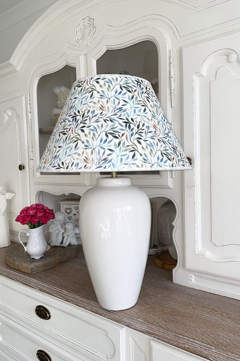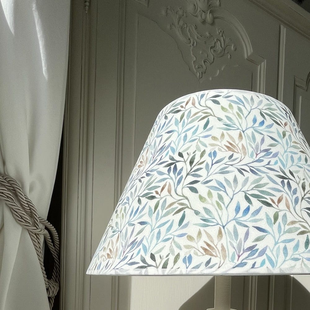 Abażur w kształcie stożka do lampy podłogowej lub lampy stołowej z mocowaniem na oprawkę E27, pięknie wykonany z DELIKATNEGO WELURU podklejonego cieniutką białą pleksi. Przepiękny kwiatowy wzór zwraca uwagę i stwarza romantyczny nastrój we wnętrzu. Abażur doskonale wpisze się w klimat klasycznych wnętrz, nadając im szyku i przytulności.