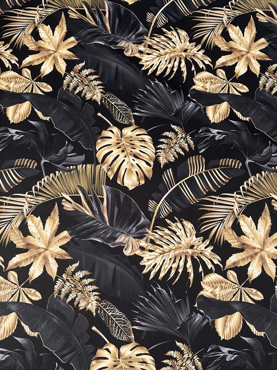 | MATERIAŁ | MONSTERA WELUR - złote liście na czarnym tle od spodu złoty |