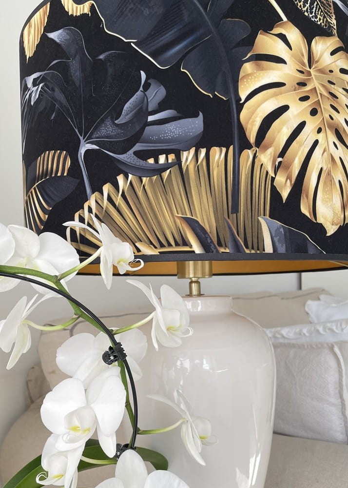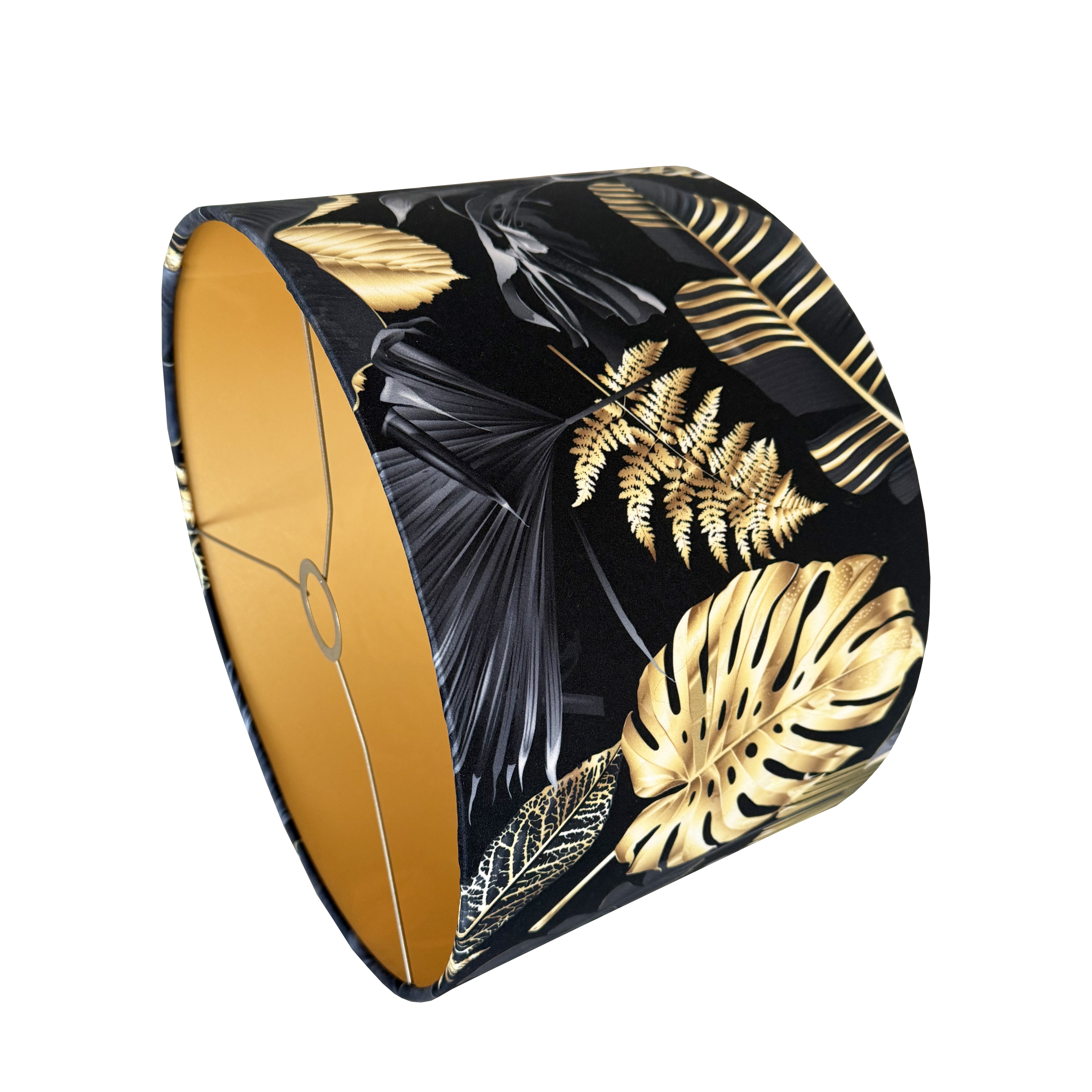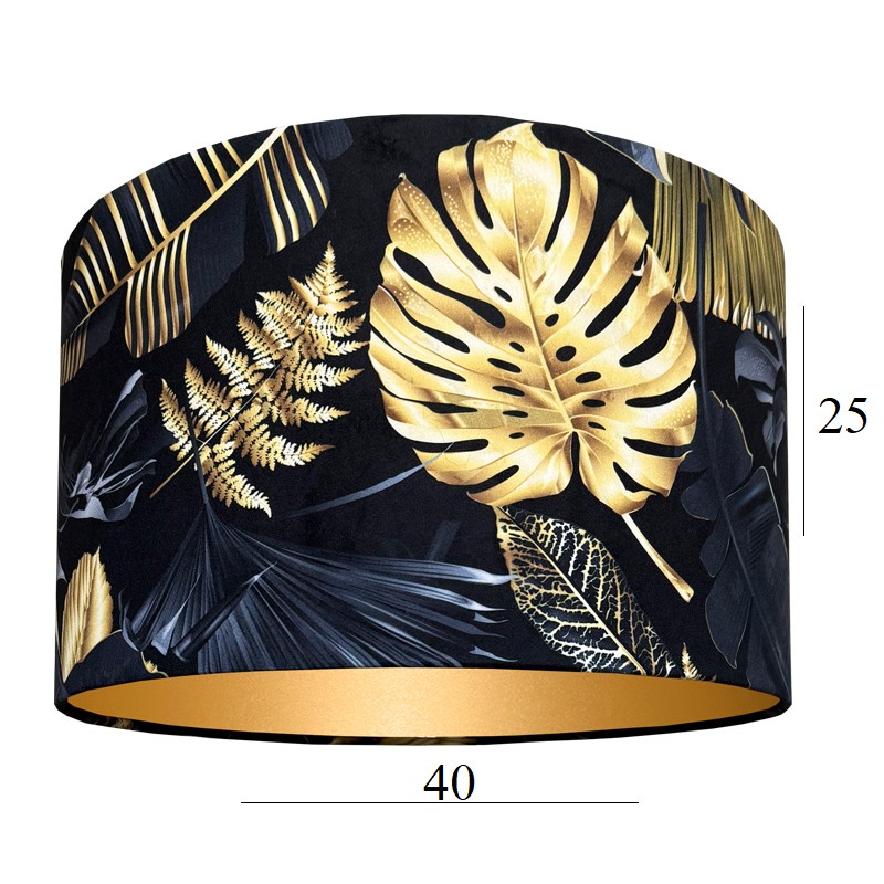 Abażur walec do lampy czarno-złoty welur 14W E27 MONSTERA 40 wys 25