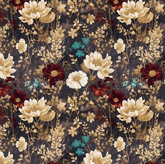 | MATERIAŁ | LEA WELUR - złote i kolorowe kwiaty, tło w kolorze antracytowym, w zależności od ułożenia tkaniny z każdej strony będzie on wyglądał inaczej |