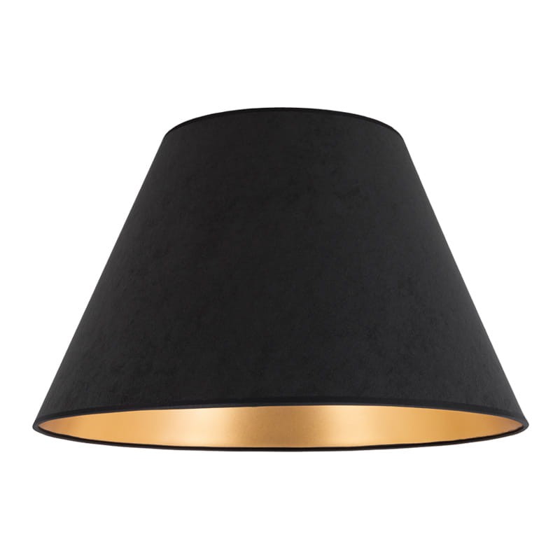 Abażur w kształcie stożka do lampy podłogowej z mocowaniem na oprawkę E27, pięknie wykonany z WELURU podklejonego cieniutką złotą pleksi. Abażur doskonale wpisze się w klimat klasycznych wnętrz, nadając im szyku i przytulności.