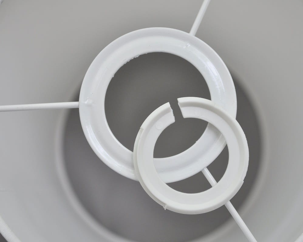 Adapter - reduktor do abażura montowanego na oprawkę żarówki. Pozwala zmniejszyć otwór mocujący z rozmiaru E27 do rozmiaru E14. Adapter wykonany jest z tworzywa.