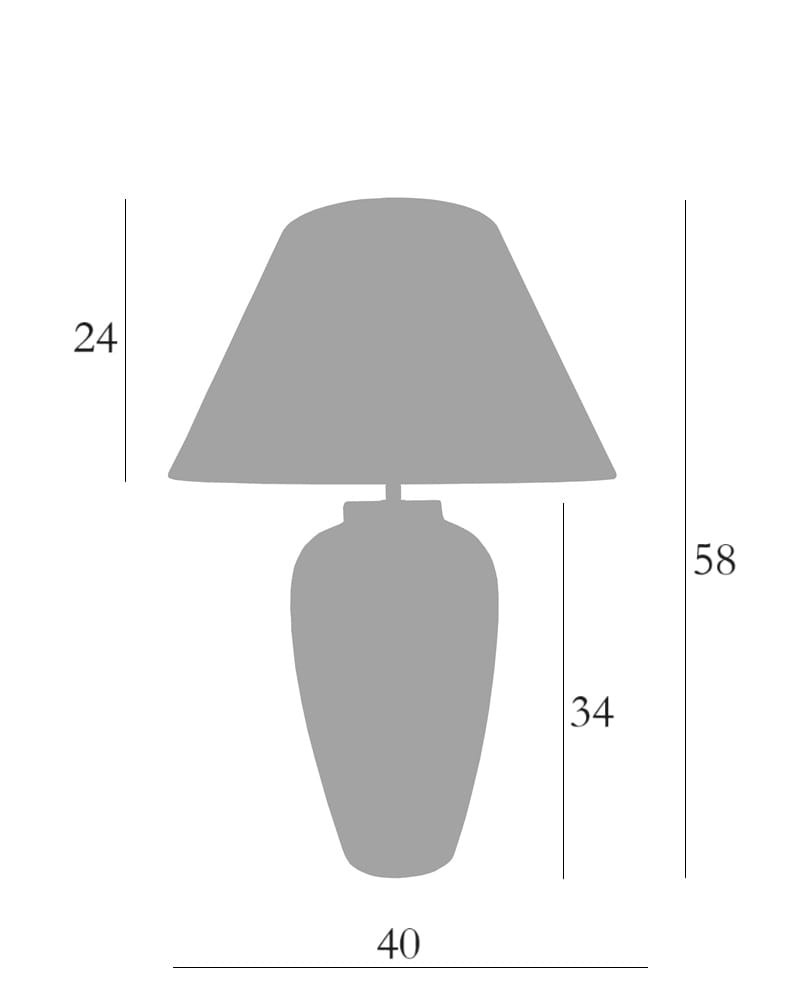 | Szerokość | średnica podstawy w najszerszym miejscu: 19,5 cm średnica wraz z abażurem: 40 cm (istnieje możliwość zmiany na abażur o średnicy 45 cm - zaznacz odpowiednie pole podczas zakupu) |