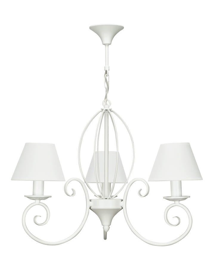 Biała lampa sufitowa do jadalni DOMINO to jedna z naszych nowości dedykowanych miłośnikom klasycznego oświetlenia. Ten efektowny żyrandol łączy ciekawe wzornictwo i wysoką jakość wykonania, został w całości wyprodukowany w Polsce. Zgrabne abażurki są dostępne w szerokiej gamie pięknych tkanin, z których z łatwością wybiorą Państwo najlepiej podkreślające styl wnętrza.