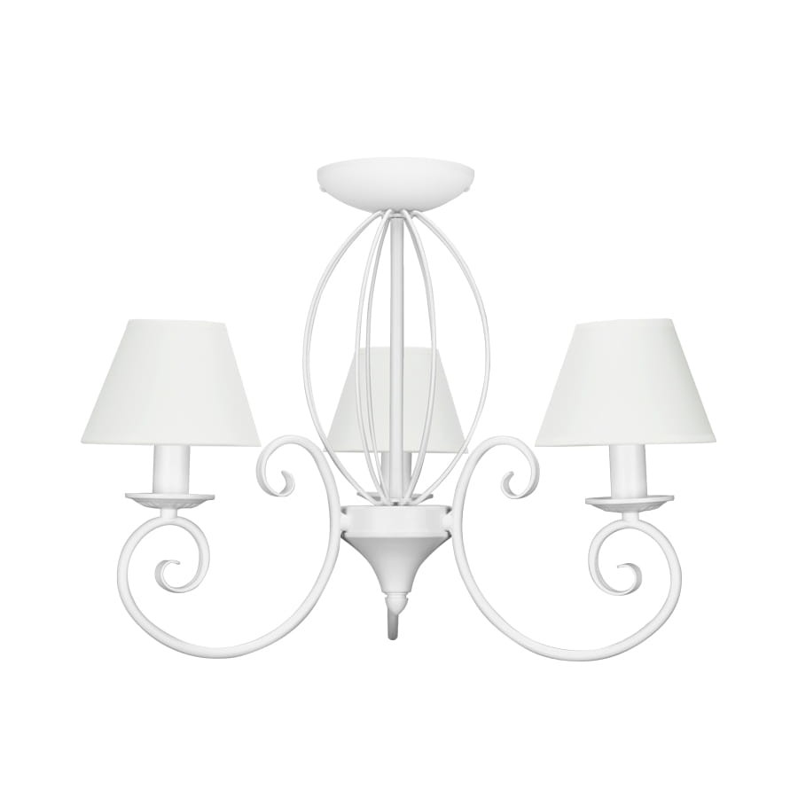 Biała lampa sufitowa krótka. Efektowny krótki żyrandol w modnej stylistyce prowansalskiej. Lampa zwraca uwagę ciekawym kształtem- klasycznym, z odrobiną współczesnej prostoty. Białe żyrandole to obecnie popularny element wystroju- dodają wnętrzu blasku i lekkości.
