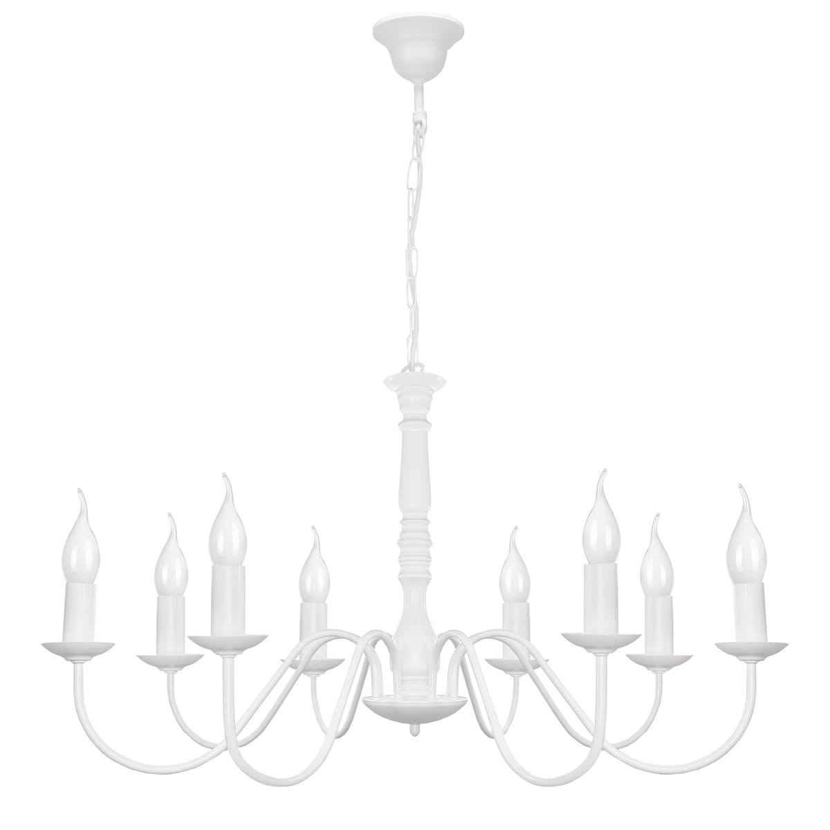 Biała lampa wisząca do dużego salonu JASMIN w stylu klasycznym. Ten biały żyrandol dzięki odpowiedniej szerokości oraz aż 8 punktom świetlnym doskonale doświetli duże pomieszczenia. Sprawdzi się zatem jako nie tylko żyrandol do wnętrz mieszkalnych ale także jako żyrandol do restauracji, hotelu itp miejsc użyteczności publicznej.