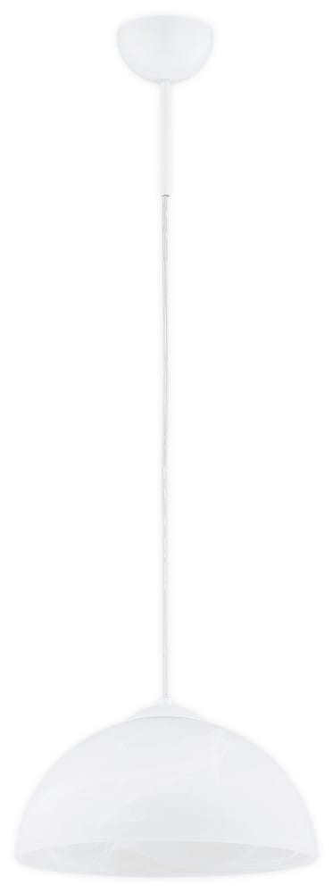 Biała lampa wisząca pojedyncza KLERO to prosta lampa sufitowa, która sprawdzi się zarówno jako oświetlenie w kuchni, na przykład nad wyspą, pięknie prezentuje się zawieszona w szpalerze po dwie lub trzy w rzędzie, jak i w korytarzu, czy w jadalni nad stołem. Biały kolor stelaża jest uniwersalny i wpisuje się w wiele stylów aranżacyjnych.