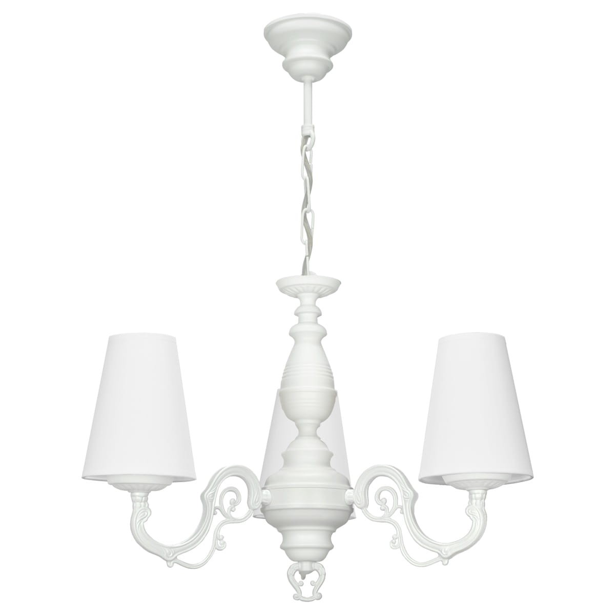 Piękna biała lampa z abażurami. Wyjątkowy żyrandol utrzymany w prowansalskiej stylistyce- ozdobny stelaż połączono z białymi, wysokimi abażurkami. Całość prezentuje się lekko i subtelnie dodając wnętrzu elegancji. Bardzo efektowny żyrandol do sypialni lub pokoiku dziecięcego, świetnie wygląda w połączeniu z jasnym wystrojem wnętrza.