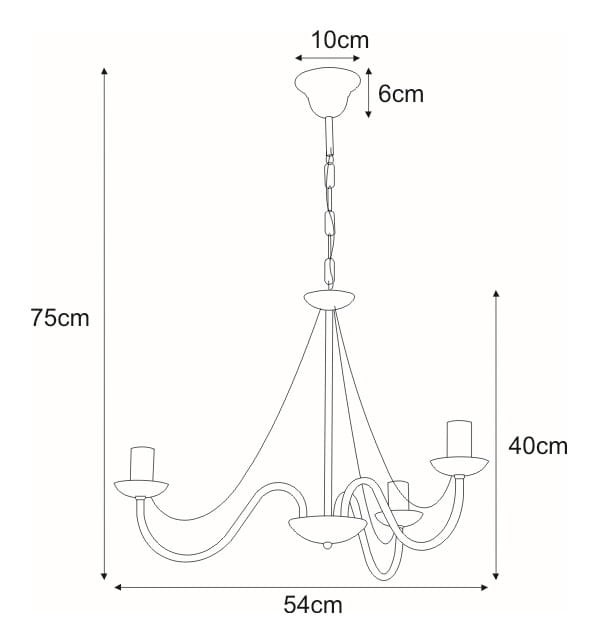 | Wysokość | 75 cm ( wysokość korpusu lampy bez łańcucha 40 cm ) |