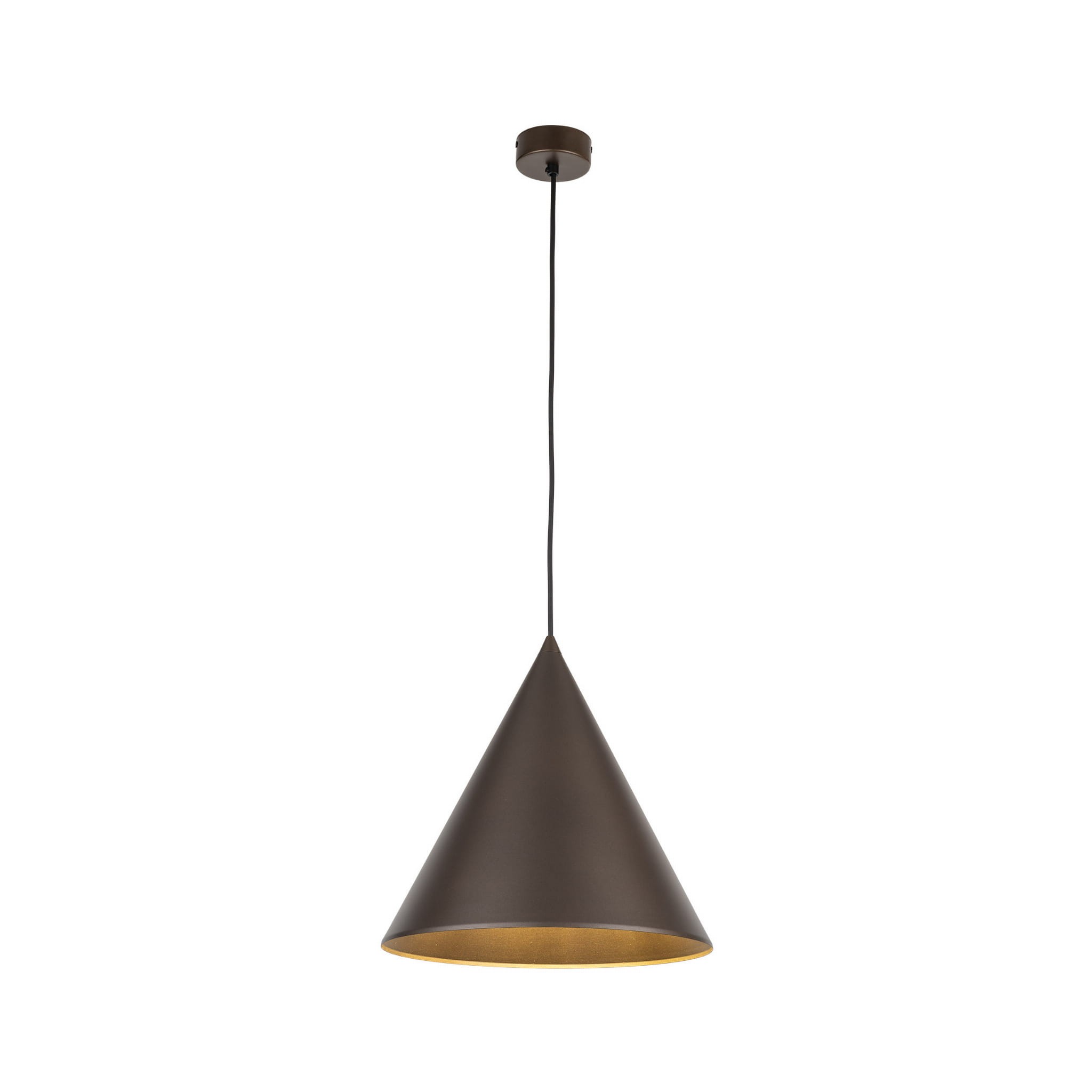 Brązowy zwis do loftowej sypialni. Metalowa, brązowa lampa w kształcie stożka to idealna propozycja do sypialni, czy kuchni, tworzy przyjemną atmosferę i stanowi subtelny, a zarazem efektowny akcent dekoracyjny podkreślając styl wnętrza.