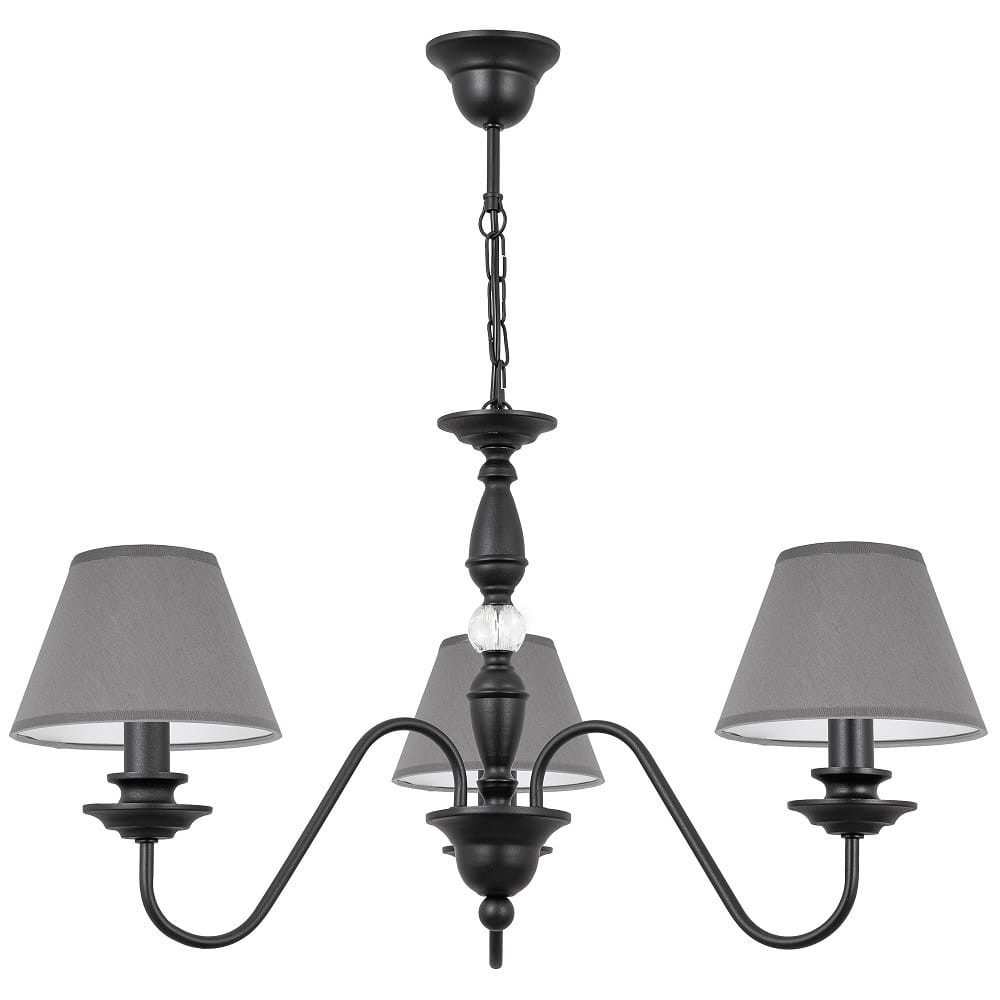 Czarna lampa sufitowa z abażurami KRISTAL. Czarna lampa sufitowa z pięknymi szarymi abażurkami nada oszałamiający wygląd każdemu pomieszczeniu w domu. Ten klasyczny model idealnie wpasuje się do salonu i nie tylko. Ciekawym dodatkiem lampy jest duży kryształ znajdujący się pośrodku, który nada jej jasności.