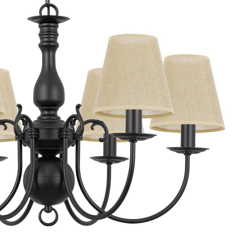 Czarna lampa z lnianymi abażurami MARIA CZARNA O3126 W6 CZA/AB/07/Le 6-ramienny