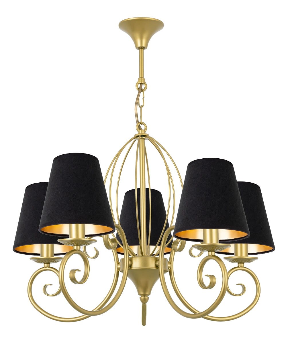 Czarno-złoty żyrandol do salonu DOMINO O3015 W5 ZL/AB/53/Le 5-ramienny