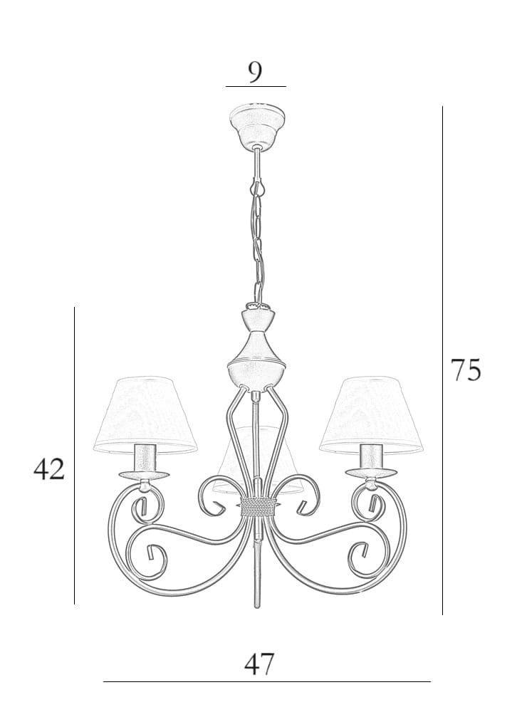 | Wysokość | 75 cm; (możliwość samodzielnego skrócenia łańcucha, długość na 1 oczku łańcucha 60 cm) |