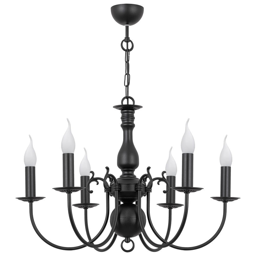 Czarny żyrandol świecznikowy 6-płomienny MARIA CZARNA CLASSIC z sześcioma punktami świetlnymi. Ten niezwykły żyrandol będzie ozdobą każdego stylowego salonu. Piękna linia lampy sprawia, że jest on wyjątkowy, nawiązuje do stylu starych przedwojennych lamp. Jego atutem jest fakt, iż został w całości wyprodukowany w Polsce, z dbałością o każdy najmniejszy szczegół.