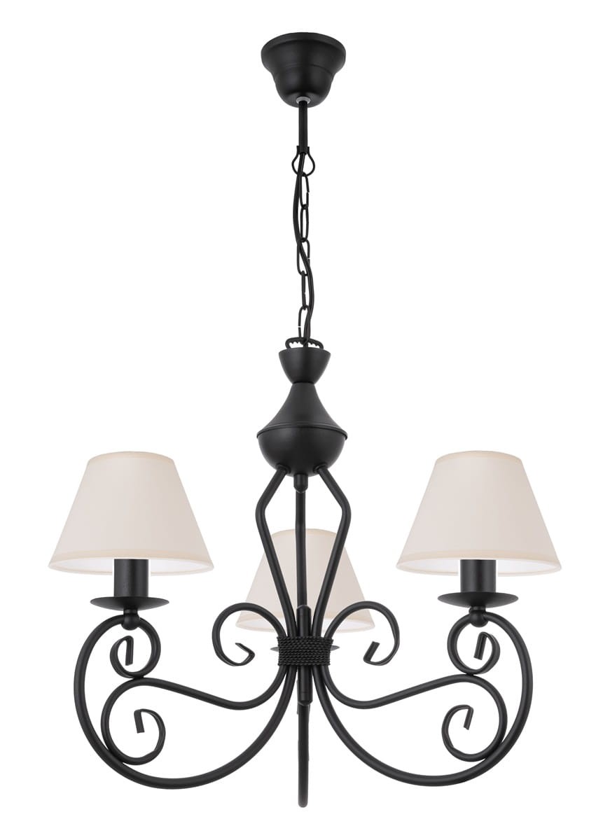 Czarny żyrandol z abażurami do salonu DALIA 3-płomienny, to piękny, ponadczasowy model idealny do klasycznych aranżacji wnętrz i nie tylko.Świetny do małego pokoju, niewielkiej sypialni czy jadalni. Wprowadzi odpowiednie jasne światło. Możesz też dla lepszego dopasowania lampy do swojego wnętrza zmienić tkaninę abażurów na dowolną z palety poniżej.
