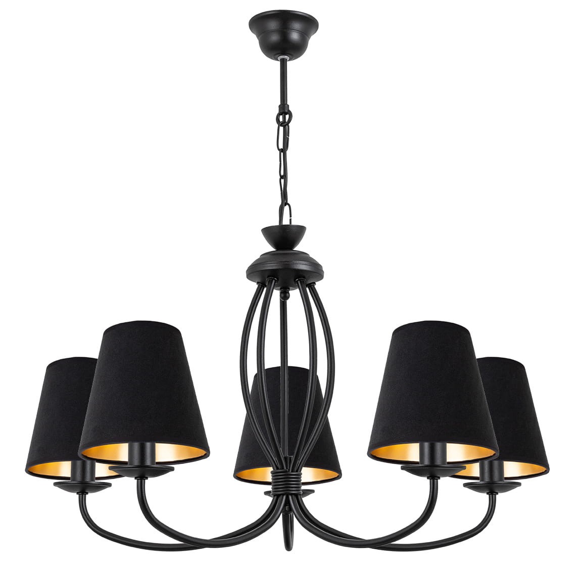 Czarny żyrandol do salonu z czarno-złotymi abażurami OLIVER O3055 W5 CZA/AB/53/Le 5-płomienny