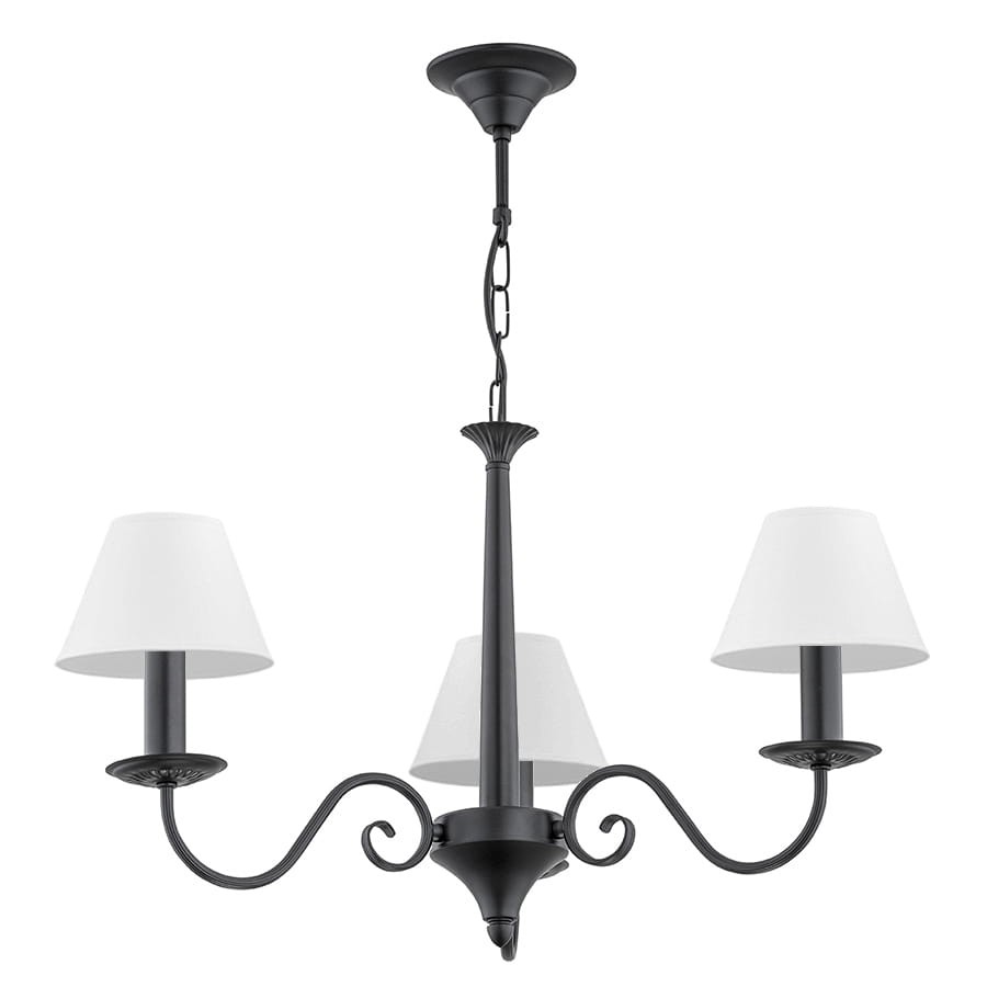 Czarny żyrandol klasyczny z rodziny ASTOR jest lampą odpowiednią do eleganckich aranżacji wnętrz. Białe abażury dodają modelowi subtelniejszy charakter i świetnie przełamują czerń stelaża.