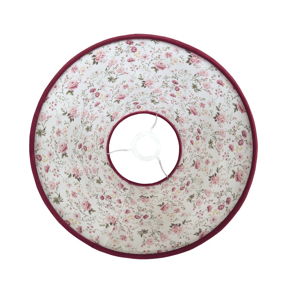 Czerwony abażur z aksamitu, z kwiatowym wnętrzem
