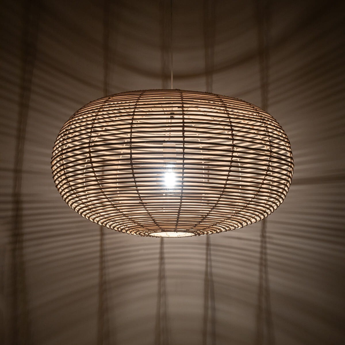 Duża lampa wisząca z bambusowym abażurem to klimatyczny element element oświetleniowy wnoszący ciepło i naturalne światło do wnętrza. Lampa w stylu śródziemnomorskim idealna do salonów i sypialni urządzonych w nadmorskim klimacie. Sprawdzi się również w skandynawskich wnętrzach urządzonych w kolorach beżu oraz bieli.