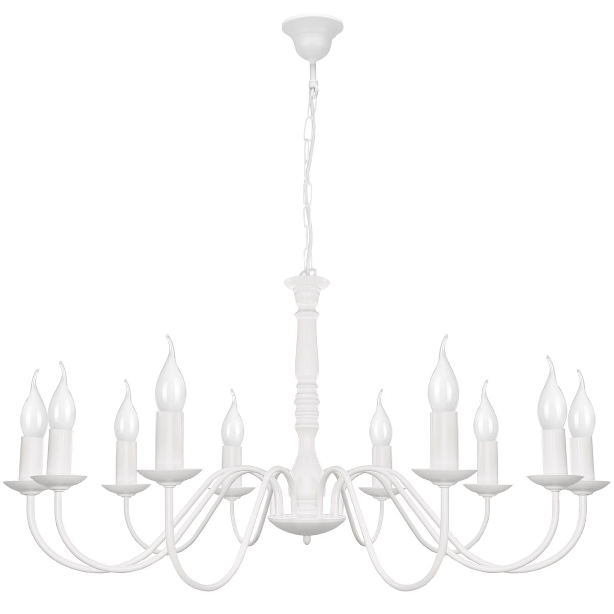 Duży prowansalski żyrandol świecznikowy biały JASMIN to przepiękny model klasycznej lampy 10-płomiennej. Niezwykle elegancki i ponadczasowy, pomalowany na biało, dzięki czemu pasuje do wielu wnętrz urządzonych w jasnych kolorach. Piękny, zdobiony środek i 10 kształtnych ramion tworzą niepowtarzalną całość, która zwraca uwagę już od wejścia do wnętrza. Ten duży żyrandol to propozycja do przestronnych salonów, restauracji, czy sal weselnych.