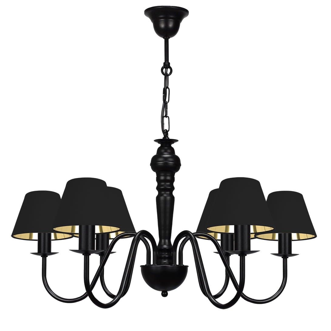 Dworkowy żyrandol z czarno-złotymi abażurami GOLDSUN 1S 1335G/27/63 6-ramienny
