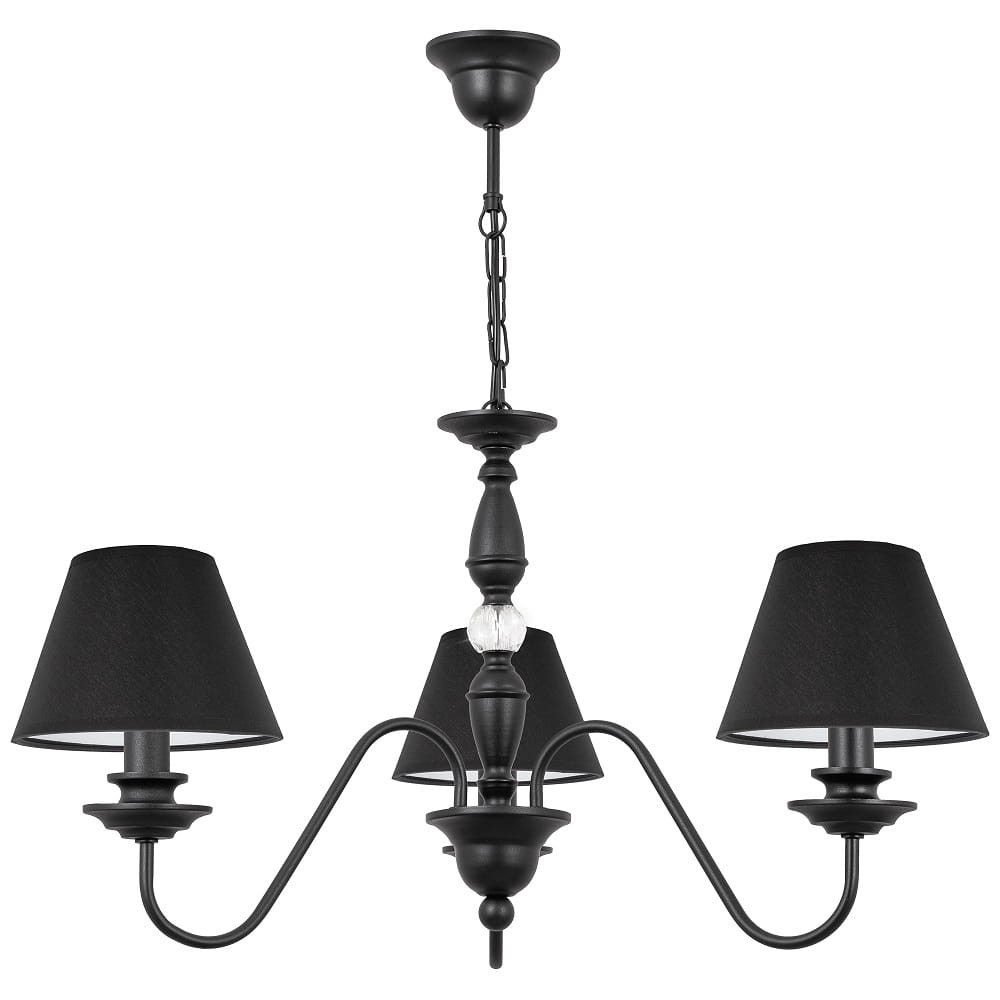 Ekskluzywny czarny żyrandol KRISTAL. Elegancki żyrandol z czarnymi abażurami. Ten luksusowy model żyrandola pięknie wypełni wnętrze salonu, sypialni i nie tylko. Przyciągnie uwagę i nada pomieszczeniu zachwycającego i unikatowego klimatu. Dodatkowym atutem lampy jest piękny kryształ, który błyszczy i odbija światło.