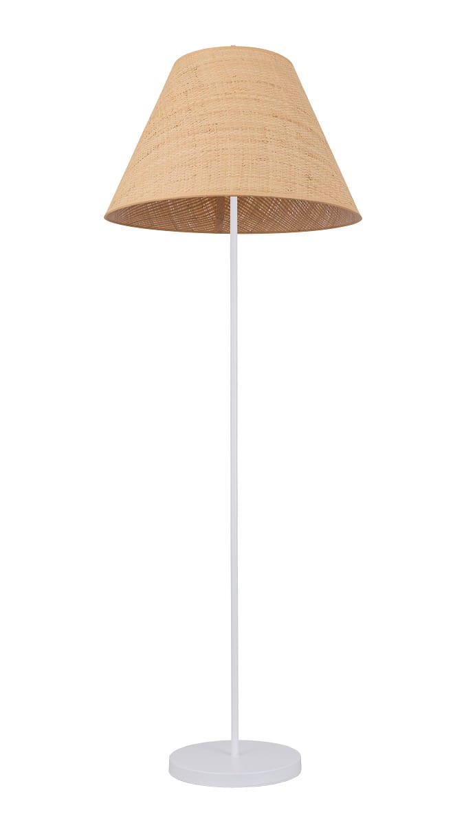 Elegancka lampa podłogowa biała z abażurem GOLDSUN 8S rattan O3369 L1 BIA