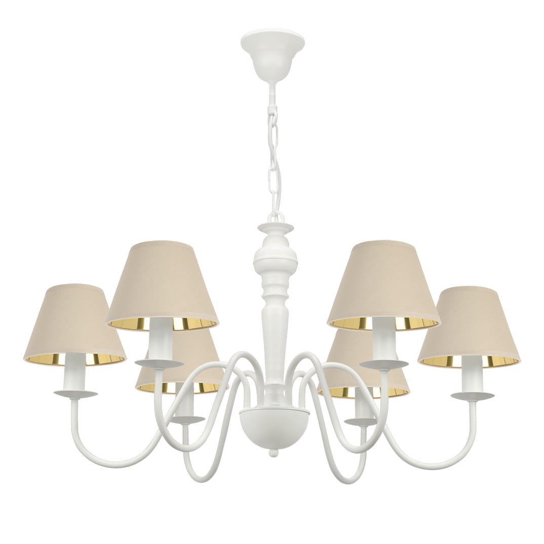Elegancka lampa z beżowo-złotymi kloszami GOLDSUN 1S 1335G/26/61 6-ramienny
