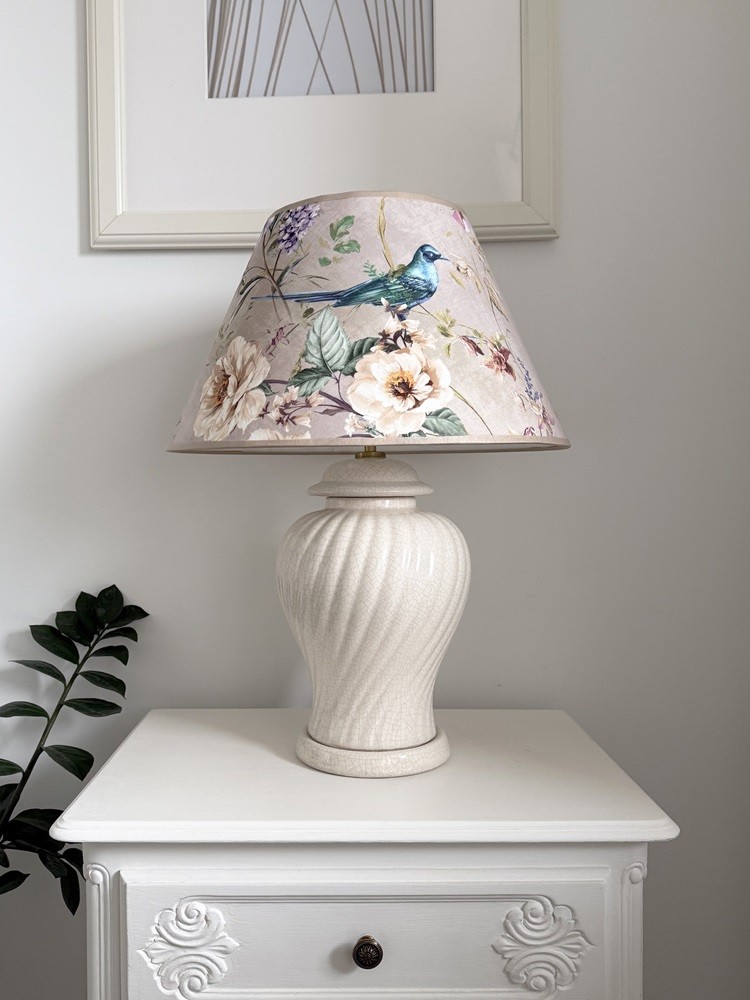 Elegancki abażur do lampy stołowej 6S E27 BIRD BEŻ WELUR stożek 20/40 wys 24