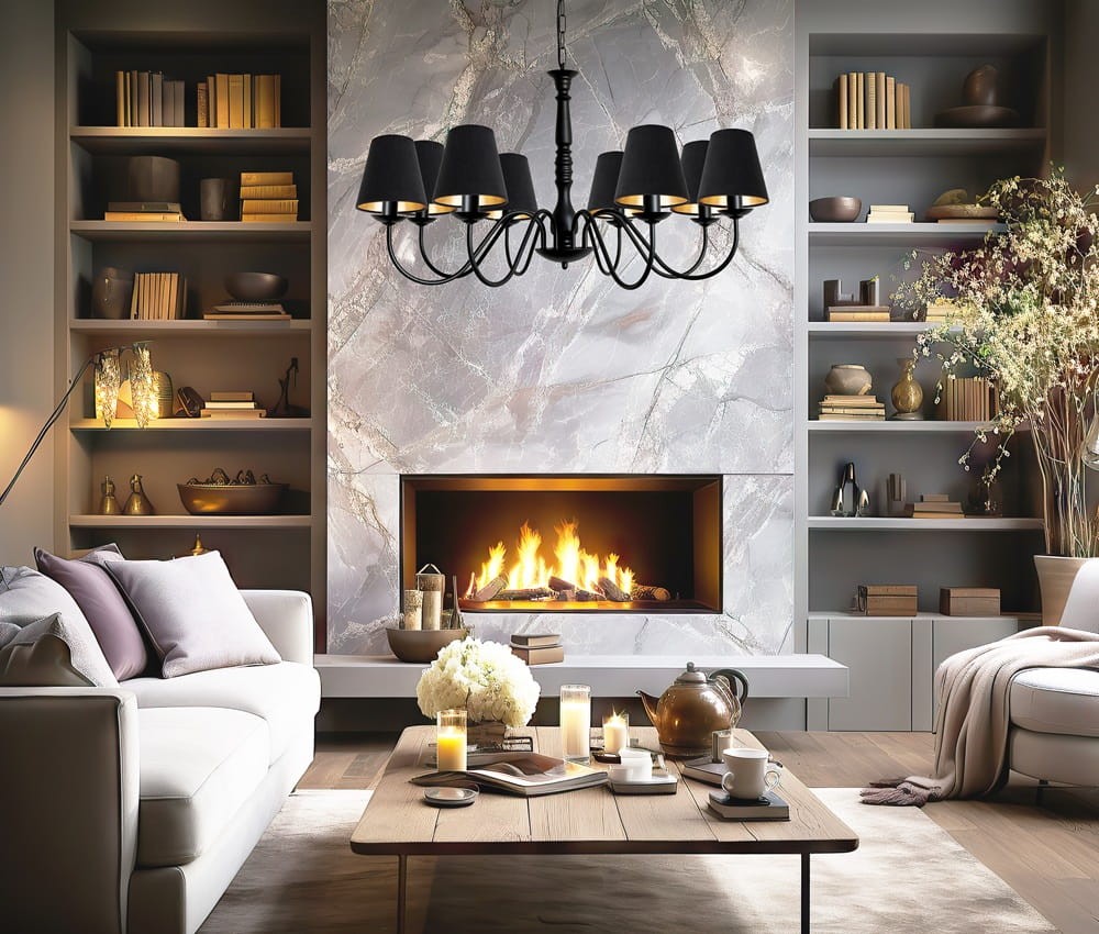 Elegancki czarny żyrandol z czarnymi abażurami do salonu JASMIN 7788/27/53 8-płomienny
