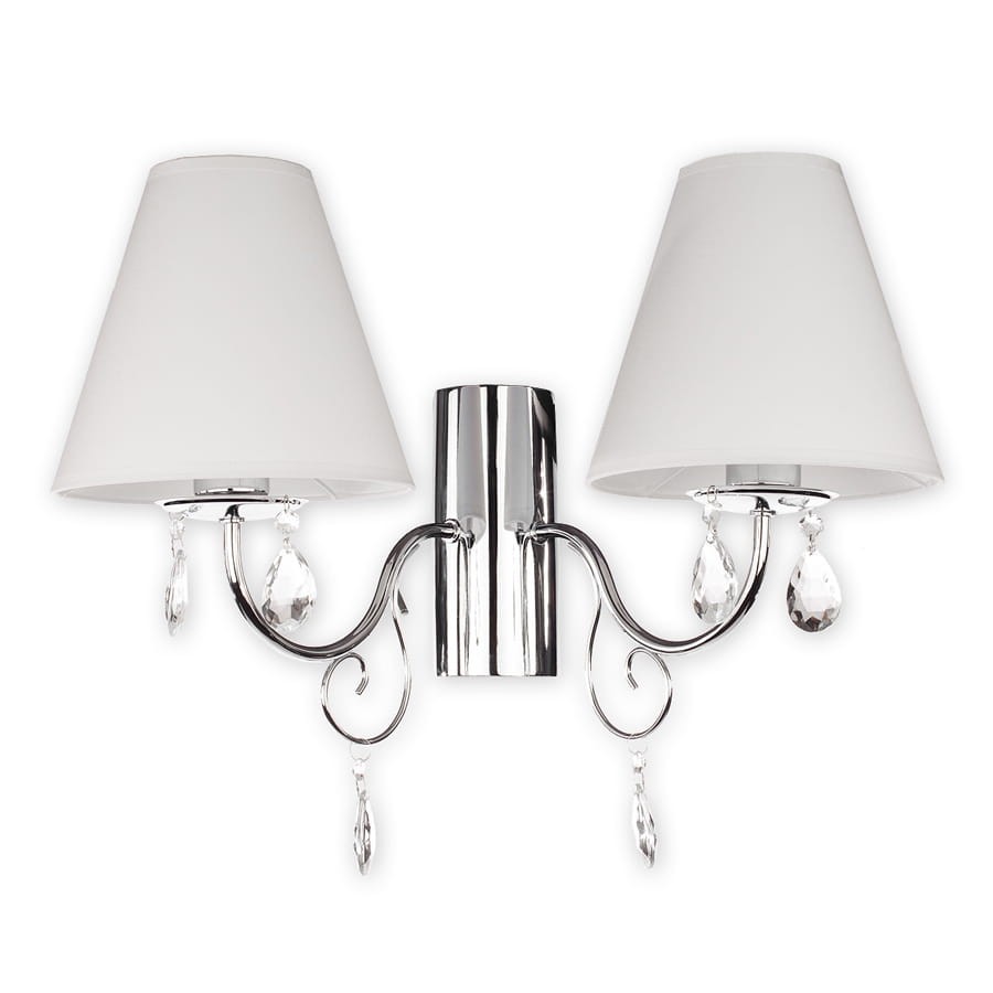 Elegancki kinkiet z białymi abażurami to model z serii VELEOS. Polecany do żyrandoli z tej samej rodziny.