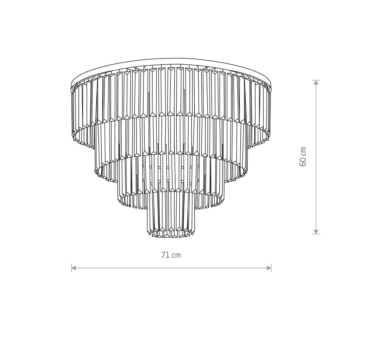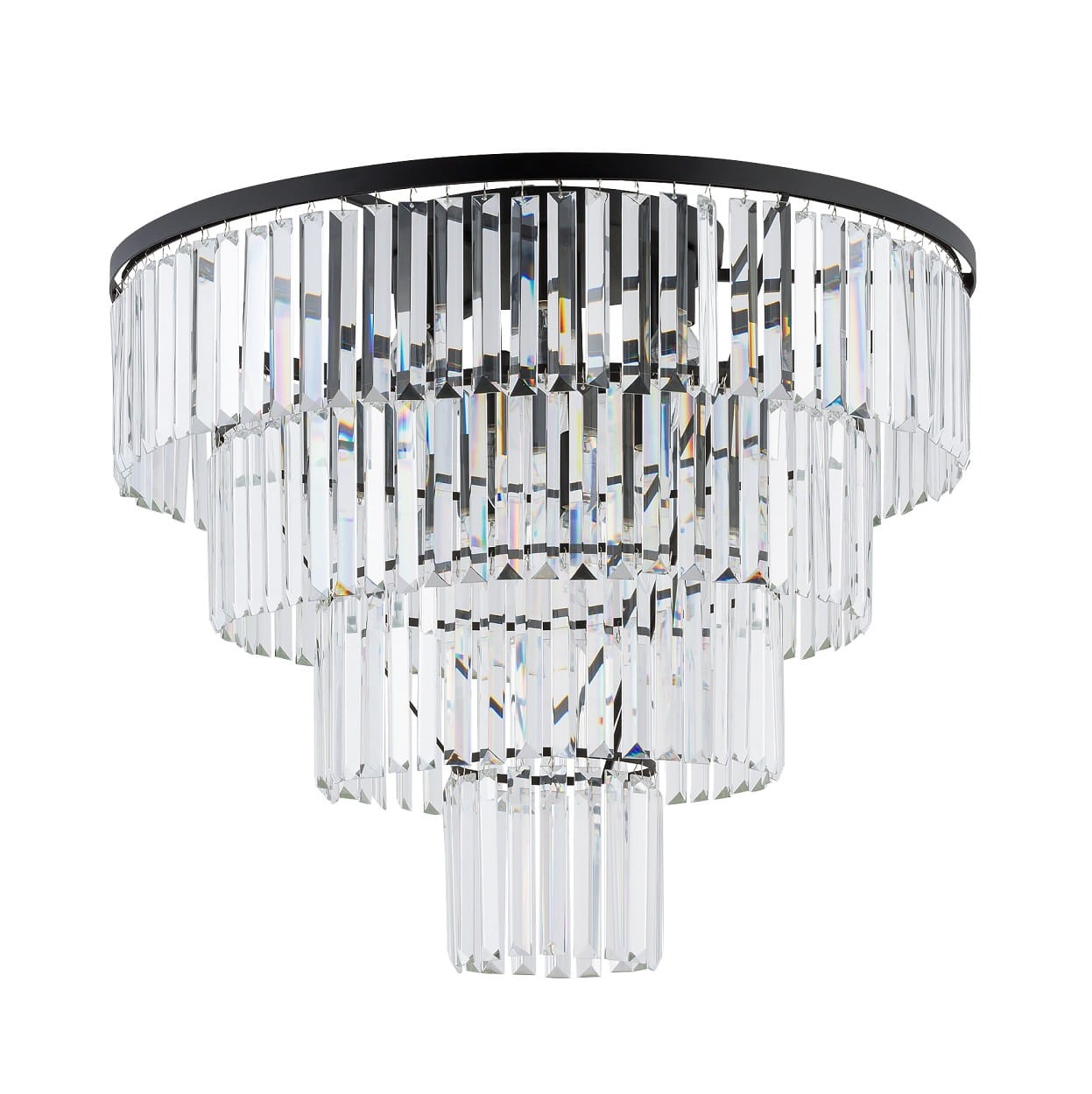 Elegancki kryształowy plafon sufitowy. Duży elegancki kryształowy plafon na czarnej podstawie będzie świetnym uzupełnieniem stylowego wnętrza w domu i nie tylko. Idealny do miejsc użytkowych takich jak np hotel. Odpowiednio rozjaśni pomieszczenie i przyciągnie wzrok. Model plafonu wykonany niezwykle precyzyjnie.