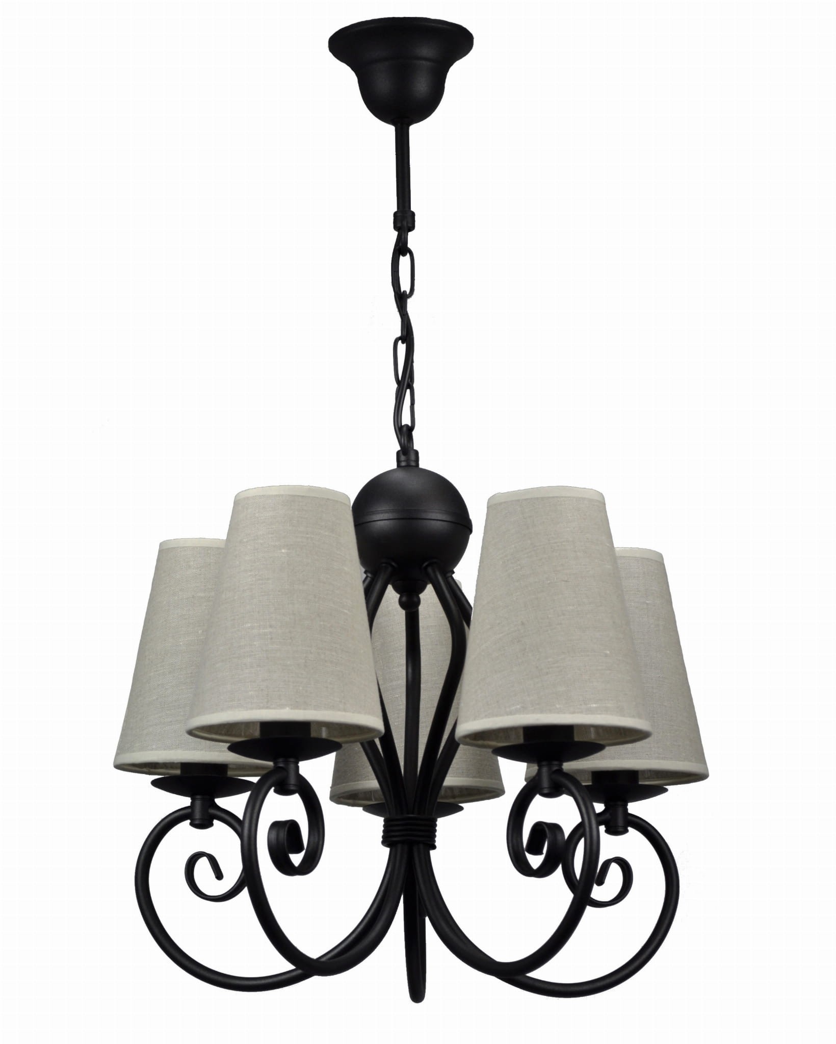 Czarny żyrandol z abażurkami doskonale pasująca do wnętrz w stylu prowansalskim, klasycznym czy shabby chic.