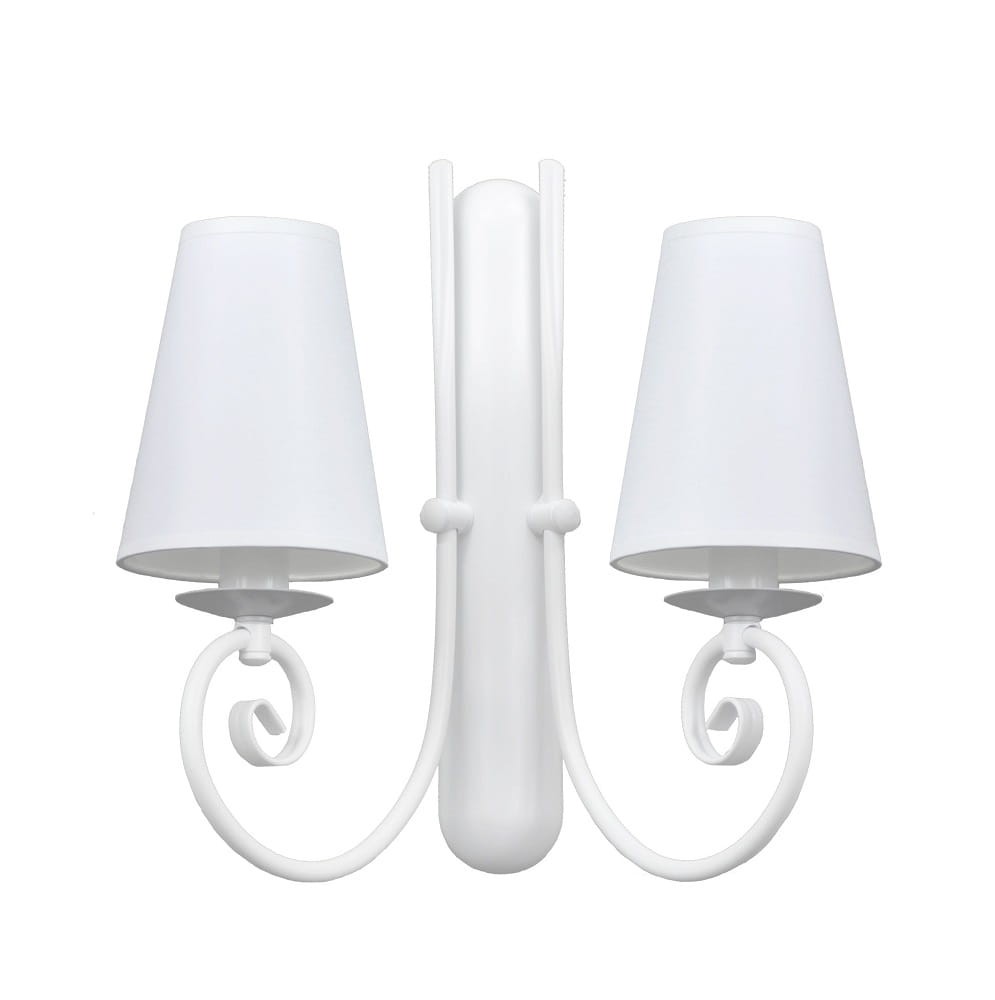 Elegancki kinkiet podwójny biały z abażurkami doskonale pasująca do wnętrz w stylu prowansalskim, klasycznym czy shabby chic.