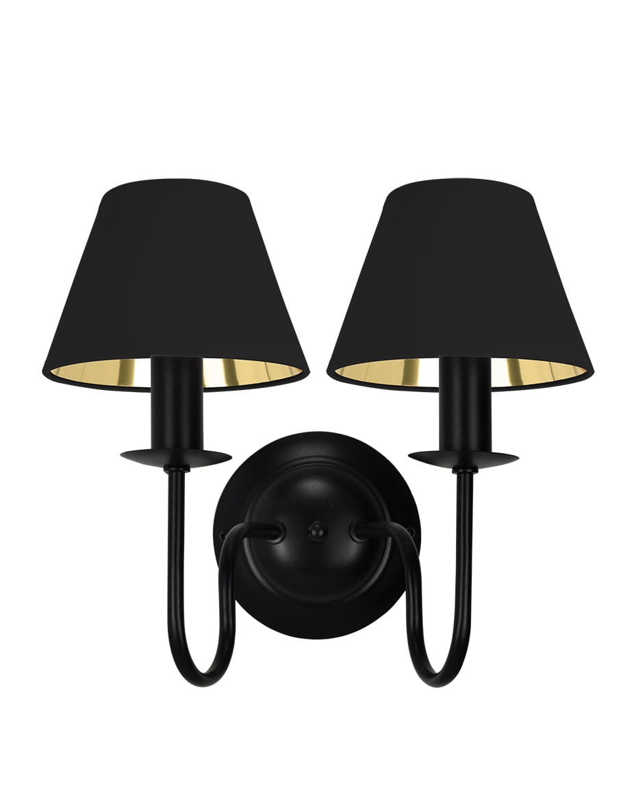 Kinkiet dwuramienny z czarnymi złotymi w środku abażurami GOLDSUN 1S 1339G/27/63