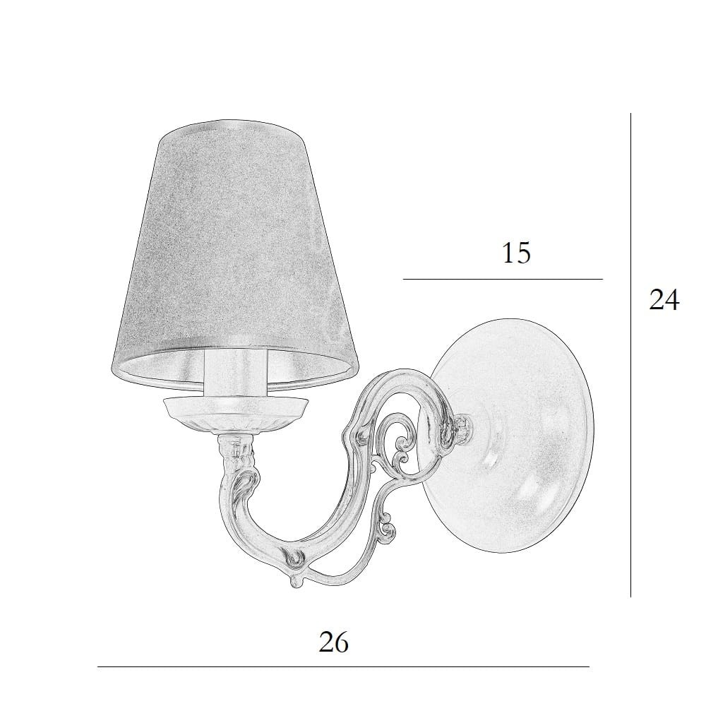 Piękny kinkiet w klasycznym stylu. Idealny kinkiet do sypialni lub przedpokoju, świetnie komponuje się z aranżacjami w jasnych odcieniach i dodatkami utrzymanymi w klimacie prowansalskim czy shabby chic. Ozdobna forma i piękna kolorystyka kinkietu z pewnością przypadną do gustu miłośnikom klasycznego oświetlenia.
