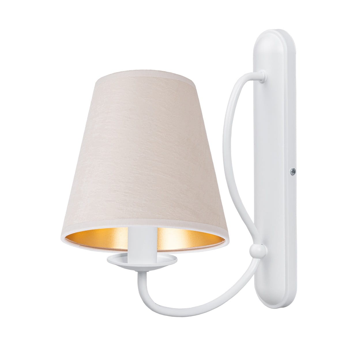 Kinkiet z abażurem z surowego weluru OLIVER. Klasyczna, a zarazem subtelna propozycja do jasnych, eleganckich wnętrz. Welurowy abażur zestawiony z białym, metalowym stelażem, tworzy wrażenie lekkości i uroku. Lampa emituje ciepłe, nastrojowe światło, które sprzyja relaksowi i buduje przytulną atmosferę. Doskonale sprawdzi się przy łóżku, nad lustrem lub jako dodatkowe źródło światła w salonie, korytarzu czy garderobie.